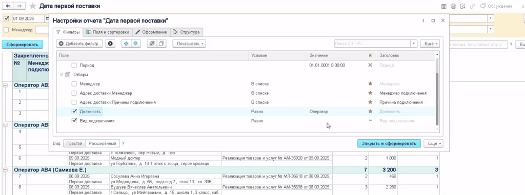 Анализ первых отгрузок: Можно проанализировать, какие товары, в каком количестве и на какую сумму были отгружены при первой поставке конкретному покупателю. Это помогает понять первые потребности клиента.